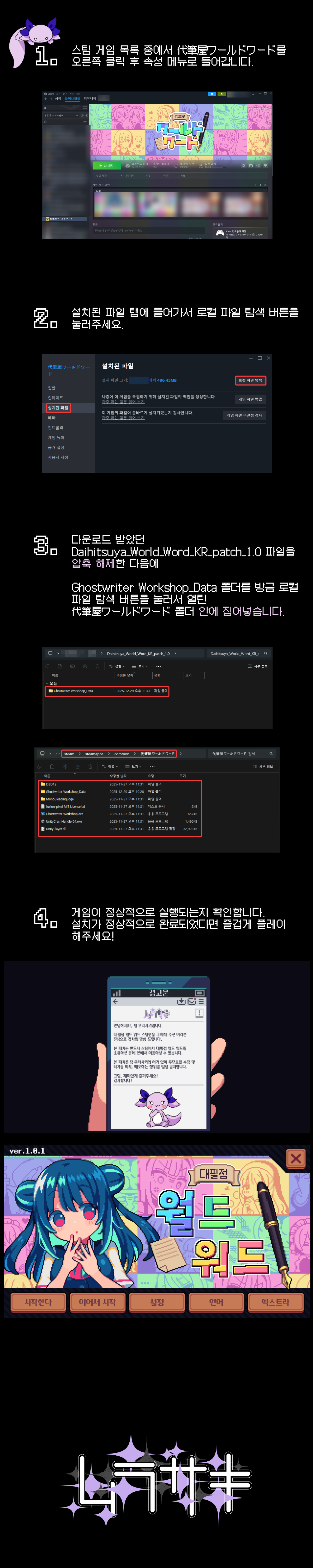 이 패치는 代筆屋ワールドワード 스팀판에 대응하는 한국어 패치입니다.